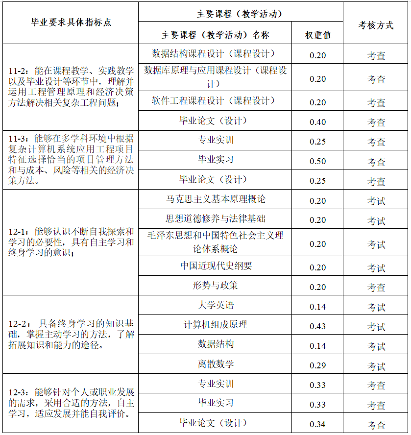 主要课程:高等数学、线性代数、概率论与数理统计、计算机科学导论、程序设计基础、数字逻辑、面向对象程序设计、电子技术基础、计算机组成原理、数据结构、Java 与面向对象技术、微机原理与接口技术、操作系统、离散数学、数据库原理与应用、计算机网络、软件工程、算法分析与设计、编译原理等。