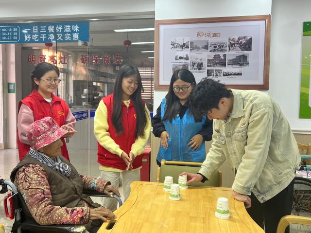 本次活动在温馨愉悦的氛围中拉开帷幕。志愿者们率先献上悠扬婉转的歌曲演唱,赢得现场老人们阵阵掌声。经典老歌合唱环节,《茉莉花》的优美旋律与《东方红》的激昂节奏相继响起,瞬间勾起老人们的青春回忆,大家情不自禁跟随哼唱,将现场气氛推向高潮。表演结束后,趣味互动环节精彩继续。志愿者们利用纸杯、乒乓球等简易道具,组织老人们开展“纸杯传乒乓球”等游戏,让老人们在动手动脑中尽享欢乐。随后,志愿者们分组与老人促膝长谈,用亲切的方言唠家常,关切询问饮食起居与身体状况,耐心倾听老人们讲述年轻时的奋斗故事与生活趣事,不时点头回应、暖心叮嘱。活动现场欢声笑语不断,暖意融融、温情满溢。参与活动的同学们纷纷表示,此次志愿服务意义非凡,既真切感受到老人们对陪伴的期盼,也明晰了青年需承担的社会责任。未来大家将持续参与此类活动,让尊老爱老的传统美德不断传递。