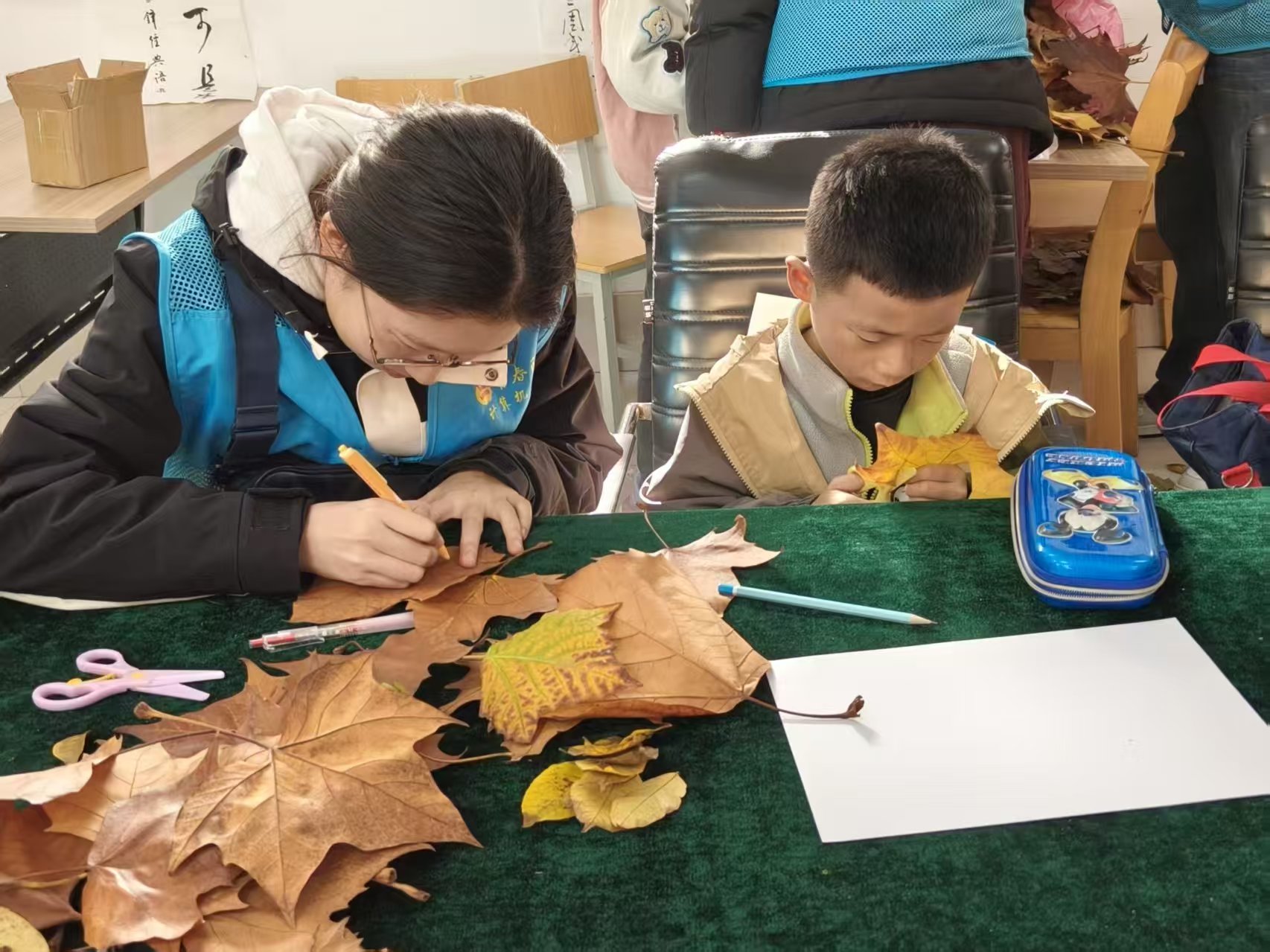 为帮助青少年增强对季节变化、植物生长规律的认知,了解落叶蕴含的丰富科学知识与生态价值,11月22日,计算机学院挂靠团委中心青年发展部于聚源社区开展“落叶拾趣,绘就自然”社区实践活动。