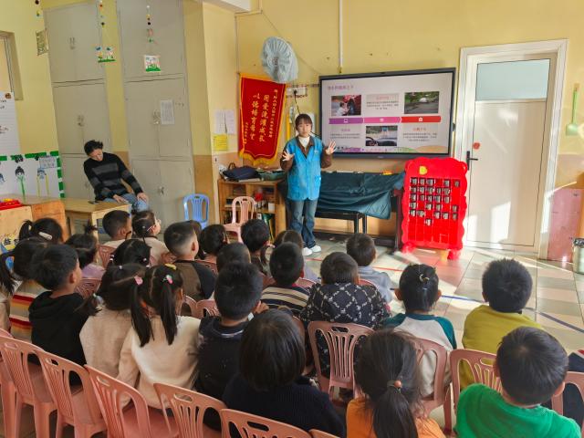 志愿者通过讲解PPT、播放精心准备的交通安全科普小视频,以通俗易懂的语言、直观形象的画面,向孩子们讲解了过马路、乘车等日常场景中的安全注意事项,引导孩子们在轻松的氛围中学习交通安全知识,让“安全出行”的种子在心中萌芽。在交通安全知识问答环节,现场气氛热烈,孩子们踊跃举手、积极抢答,展现出浓厚的学习兴趣。对于表现优秀的小朋友,志愿者及时给予奖励,以正向激励的方式,让孩子们在快乐中巩固所学知识。活动尾声,志愿者对本次宣讲内容进行了系统总结,用一首节奏明快、朗朗上口的交通安全儿歌帮助孩子们梳理重点知识,加深对交通安全规则的理解与记忆。在志愿者的耐心引导和鼓励下,孩子们跟着节奏认真学唱,稚嫩的歌声中传递着对交通安全的重视,有效强化了学习效果,在孩子心中筑起出行安全屏障。