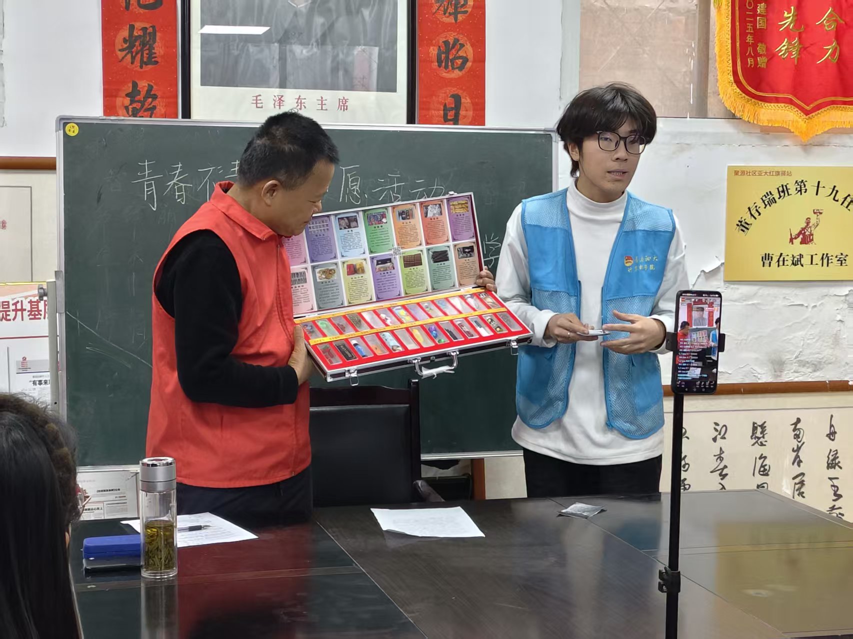 志愿者有序向到场居民发放禁毒宣传手册,并通过讲述真实禁毒案例故事,普及禁毒法律法规及防毒知识,为社区居民敲响安全警钟,引导居民深刻认识毒品对个人、家庭及社会的严重危害。随后,志愿者借助仿真毒品道具模型,直观展示传统毒品、新型毒品的外观特征,细致讲解各类毒品的识别要点、成瘾机制,尤其重点拆解了伪装成零食、饮料、邮票等形态的新型毒品的识别要点,帮助居民打破“毒品离生活很远”的认知误区。志愿者还邀请居民填写禁毒认知调研报告,全面了解大家对毒品知识的掌握程度及禁毒宣传需求,为后续精准开展禁毒工作提供参考。现场氛围严肃且活跃,居民们认真聆听、主动提问,牛东华结合社区工作实际补充强调防毒注意事项,切实推动禁毒理念扎根人心。