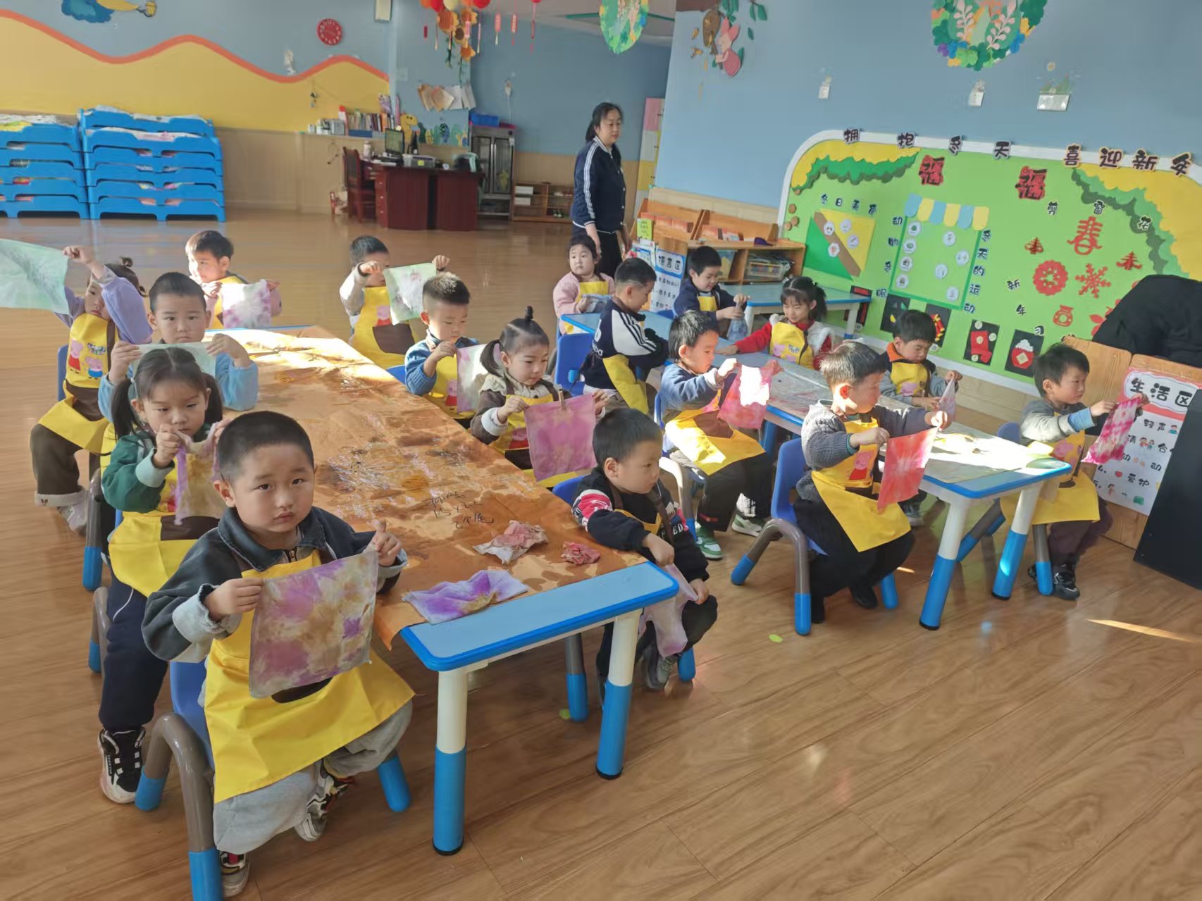 为传承中华优秀传统文化,厚植青少年文化自信,助力非遗技艺代际传承,3月6日,人工智能与计算机学院2024级4班团支部以“一根丝线染千年,一席蓝白话中国”为主题,走进幼儿园开展非遗扎染传承寒假社会实践活动。