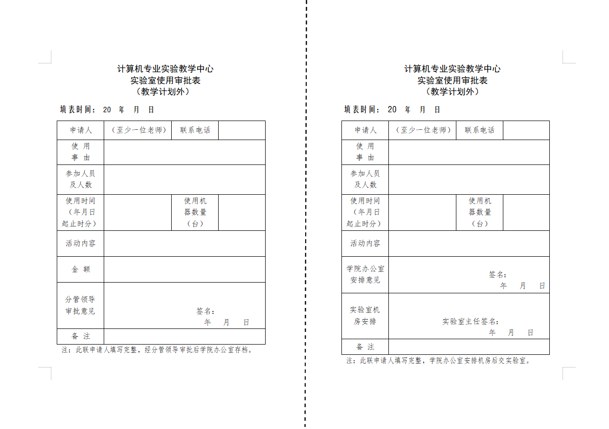 计算机专业实验教学中心实验室使用审批表 (教学计划外)
