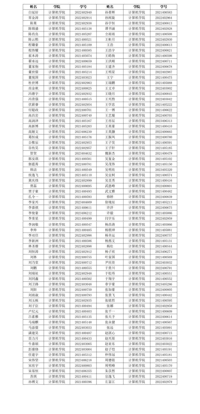 计算机学院三创奖学金名单公示